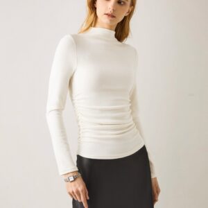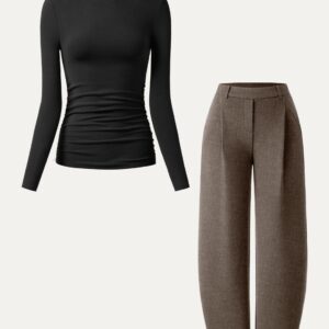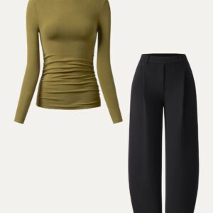 2-teiliges Set: Oberteil mit Raffungen an den Seiten und Stehkragen & mittelhoch geschnittene Schlupfhose mit weitem Bein.
