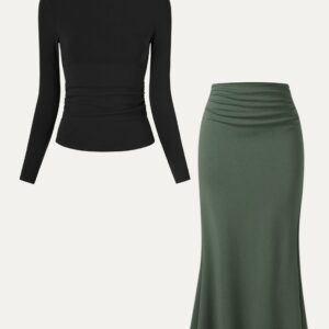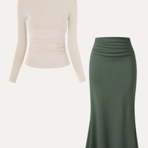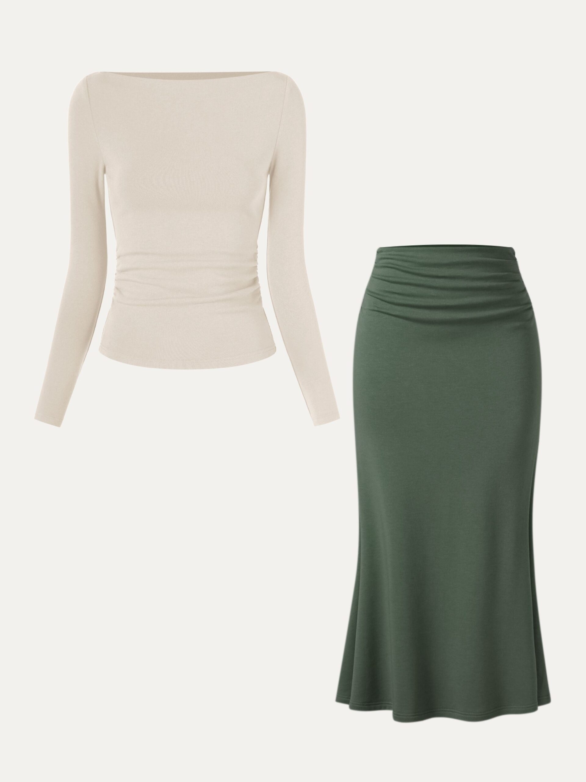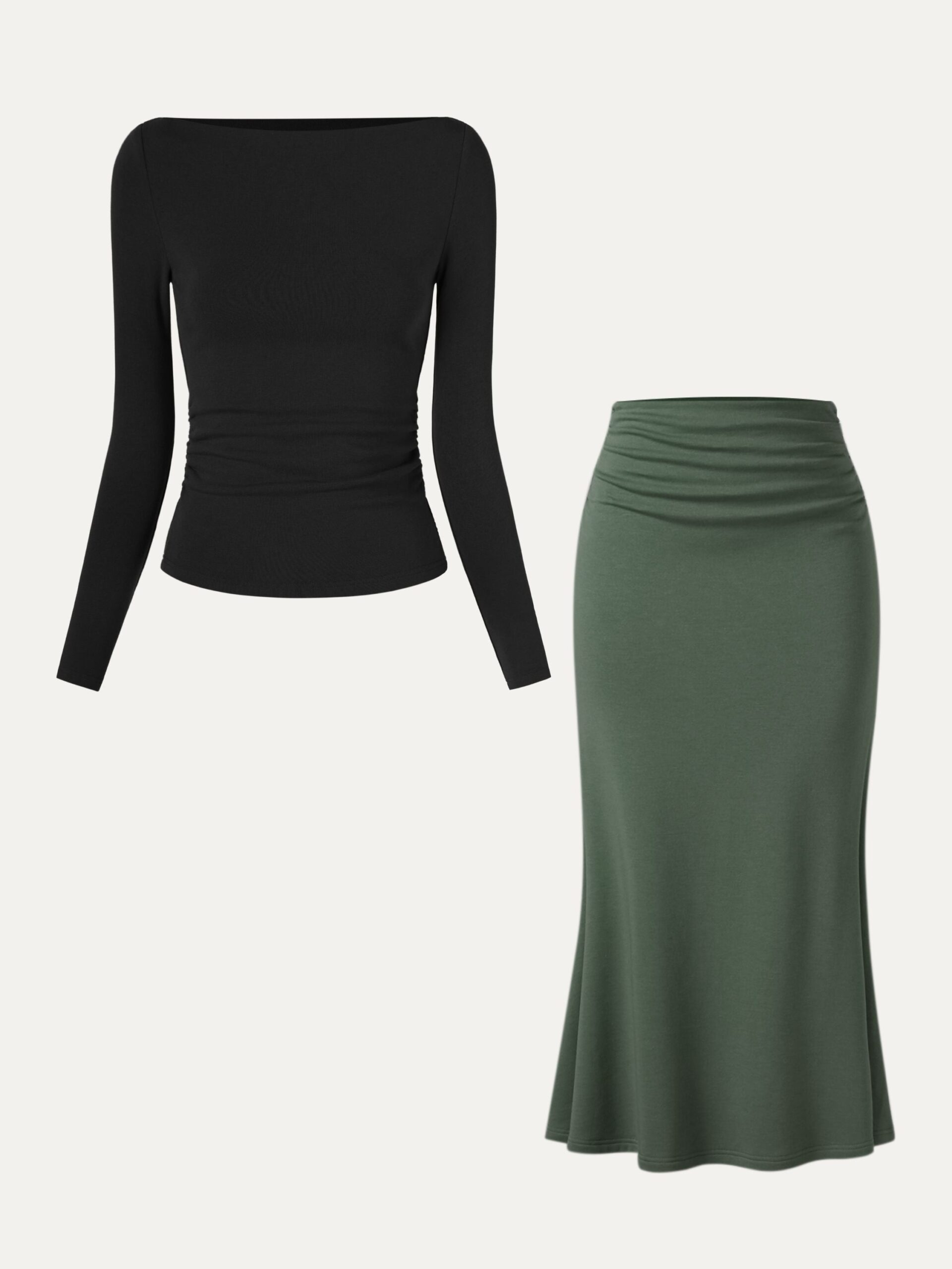 2-teiliges Set: Seitlich gerafftes BH-Oberteil mit U-Boot-Ausschnitt und Meerjungfrauen-Maxirock