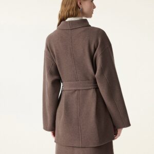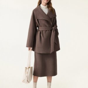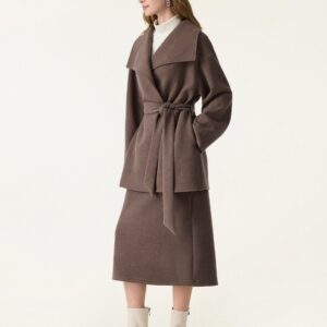 2-teiliges Set: Wickelmantel mit Gürtel und wandelbarem Kragen & figurformender A-Linien-Schlupfrock (Midi-Länge).