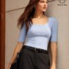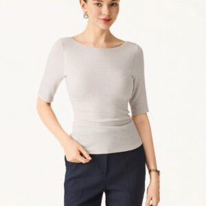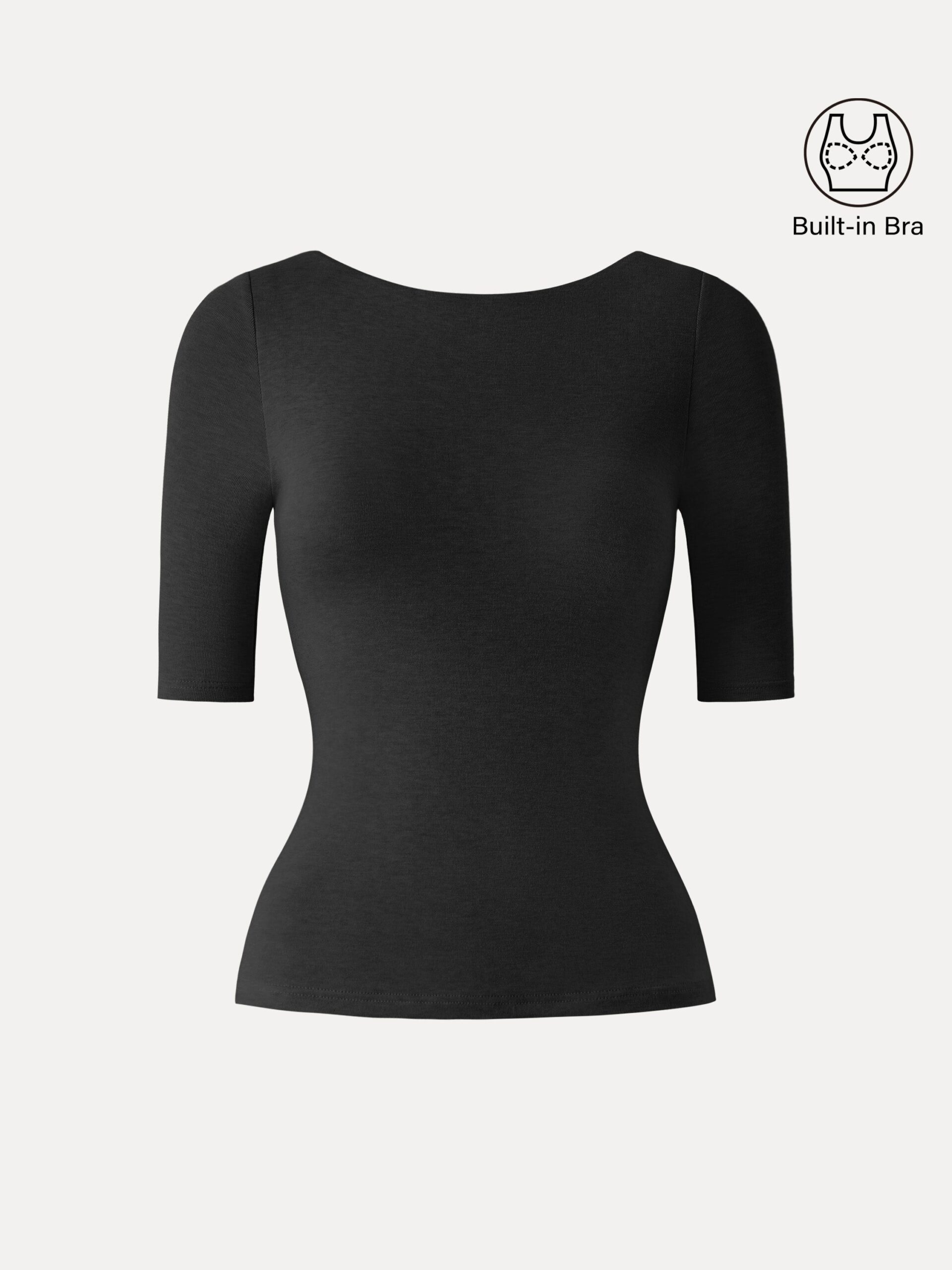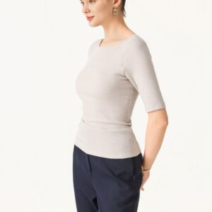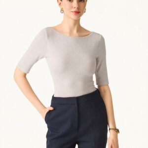 Essential Lyocell Kaschmir U-Boot-Ausschnitt Ellenbogenlange Ärmel Brami
