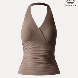 Neckholder-Tanktop mit seitlicher Raffung, neu, luftig, Brami