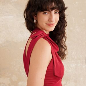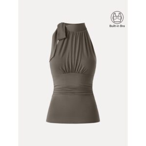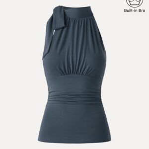 Seitlich gerafftes Top mit Schleife am Ausschnitt – New Airy Brami